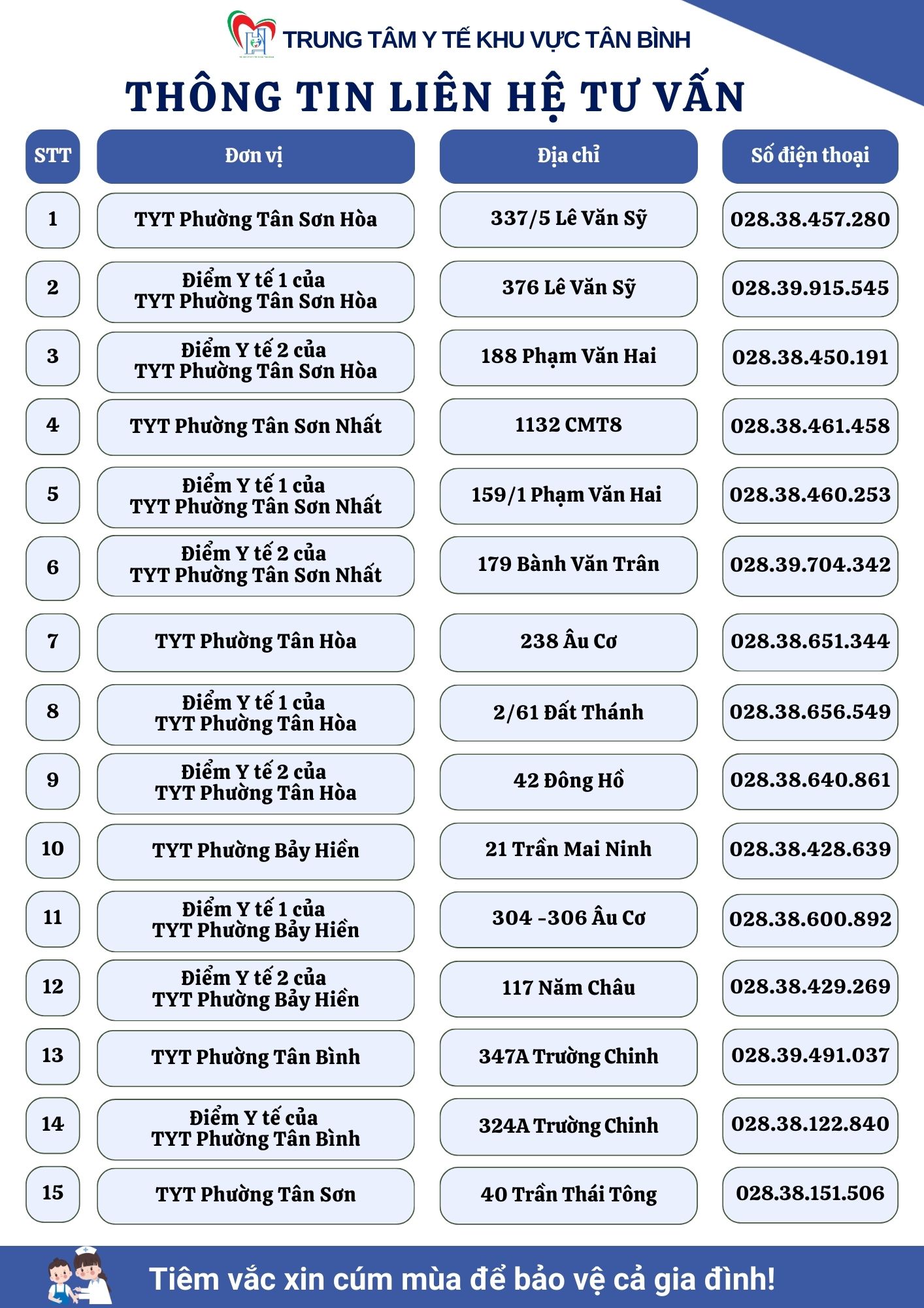 Nguồn: Trung tâm Y tế khu vực Tân Bình