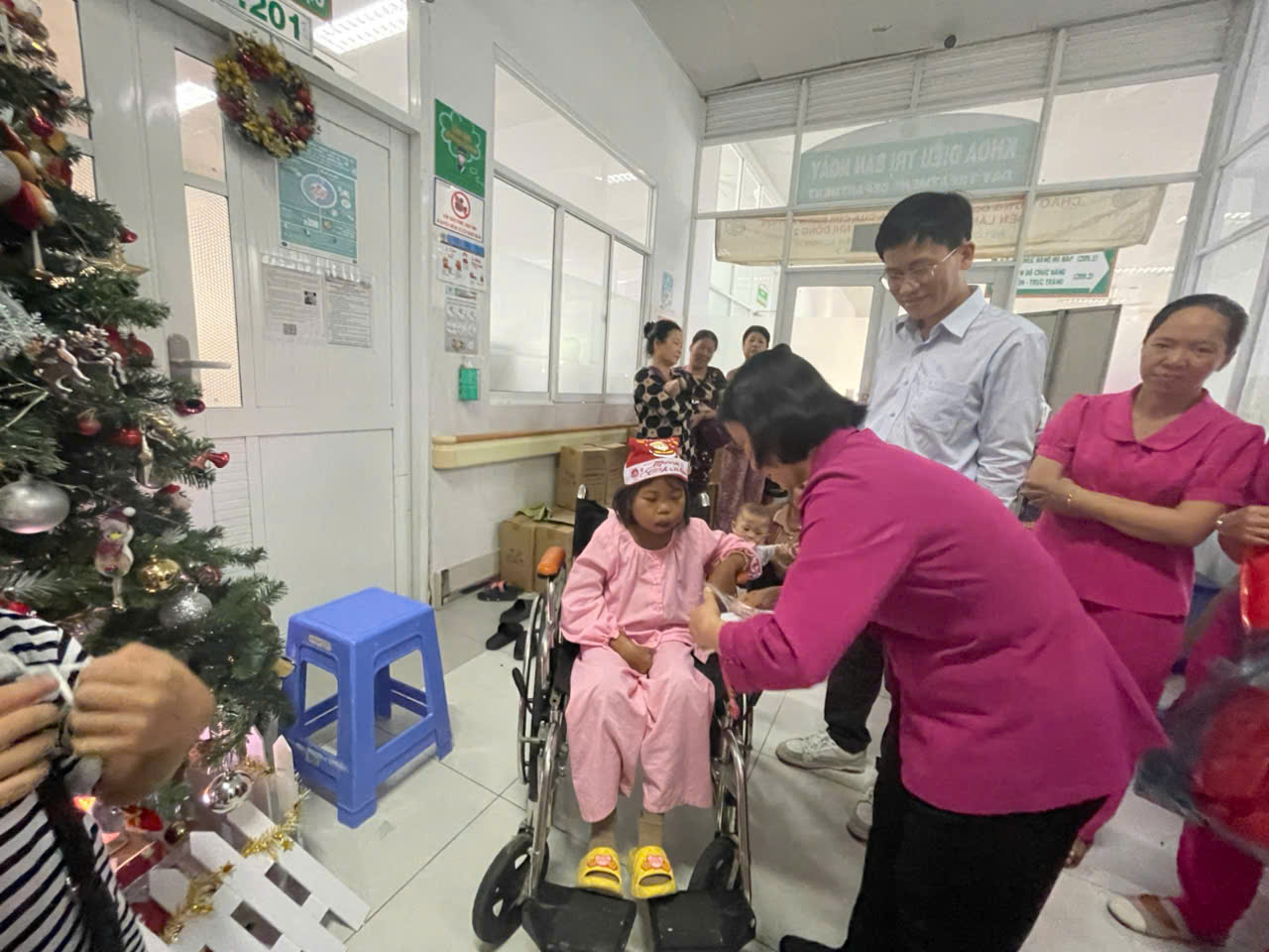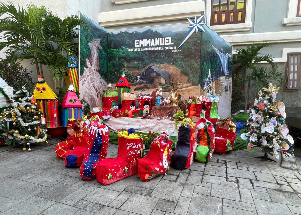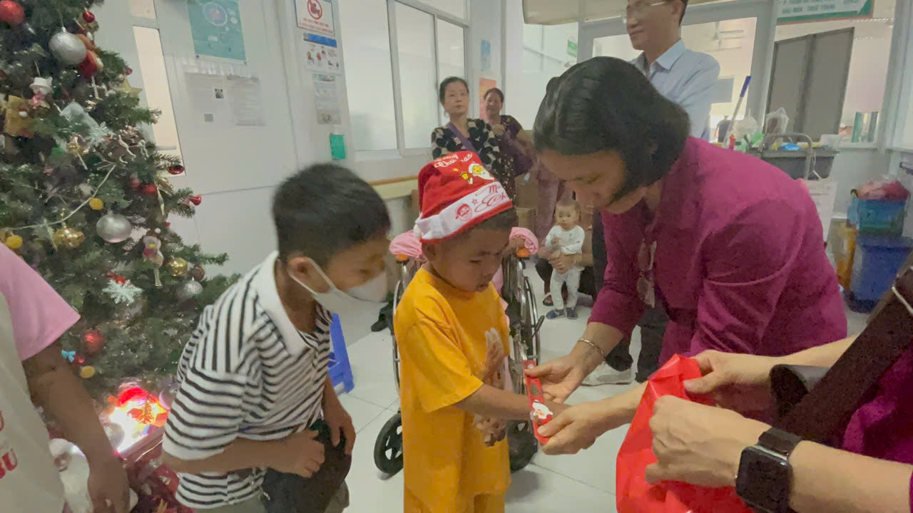 Noel về, Tiết trời Sài Gòn se lạnh . Hôm nay các bạn nhỏ Trường Mẫu giáo Bông Hồng vui đón Noel bên các Soeur, các cô và bạn bè. Những nụ cười tươi, những điệu nhảy múa rộn ràng, những ánh mắt lấp lánh niềm vui khi được ông Già Noel tặng quà… Năm nay, Quý Soeur, Quí cô dạy cho các Bé biết có các bạn nghèo, đặc biệt các bạn nghèo Làng Nủ, các bạn bị ốm trong các bệnh viện, không thể vui chơi Giáng Sinh, và đón tết giống chúng con. Chúng con chẳng có gì nhiều, chỉ có một ít quà nhỏ mà ba mẹ cho tiết kiệm để hôm nay chúng con Kính Dâng Chúa. Kính xin Chúa cho chúng con được gởi món quả nhỏ này đến các bạn nghèo, qua cuộc thăm viếng trực tiếp của Qúi Dì Quí cô.
